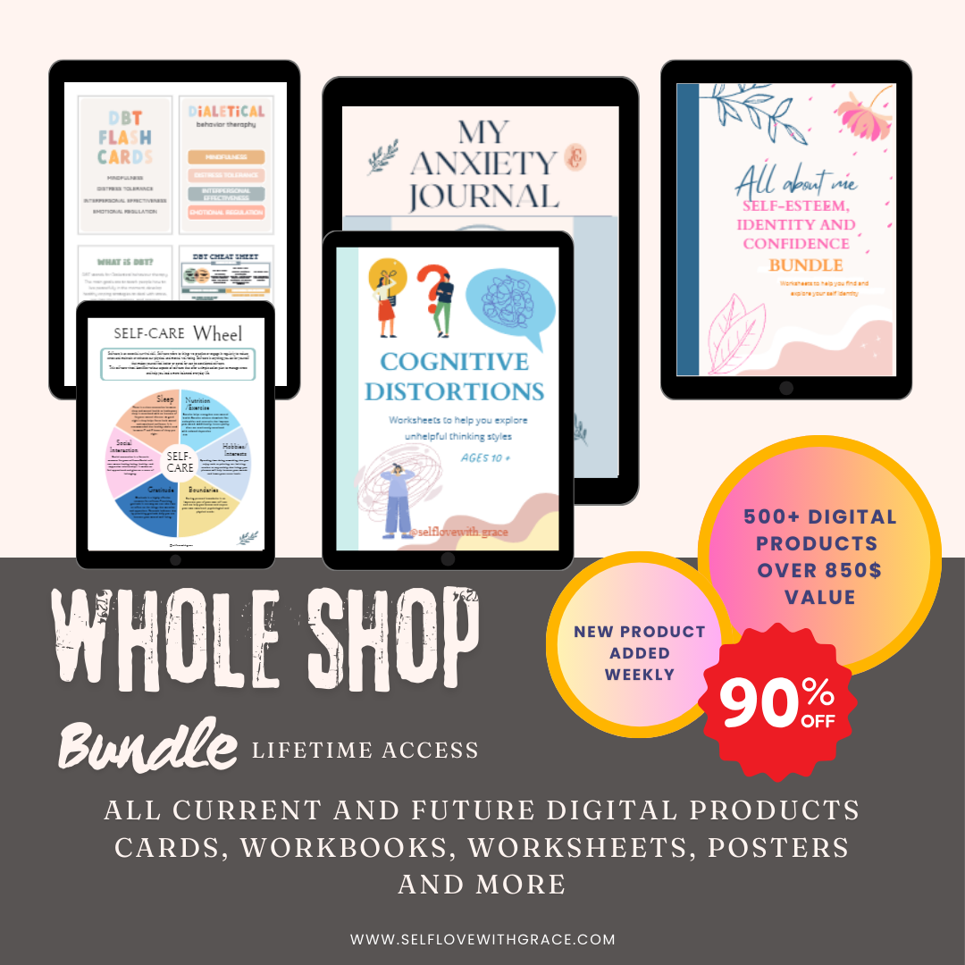 - Teen mega 90% off bundle, therapy worksheets, healing journey, depression, anxiety, cognitive distortions, affirmations, boundaries